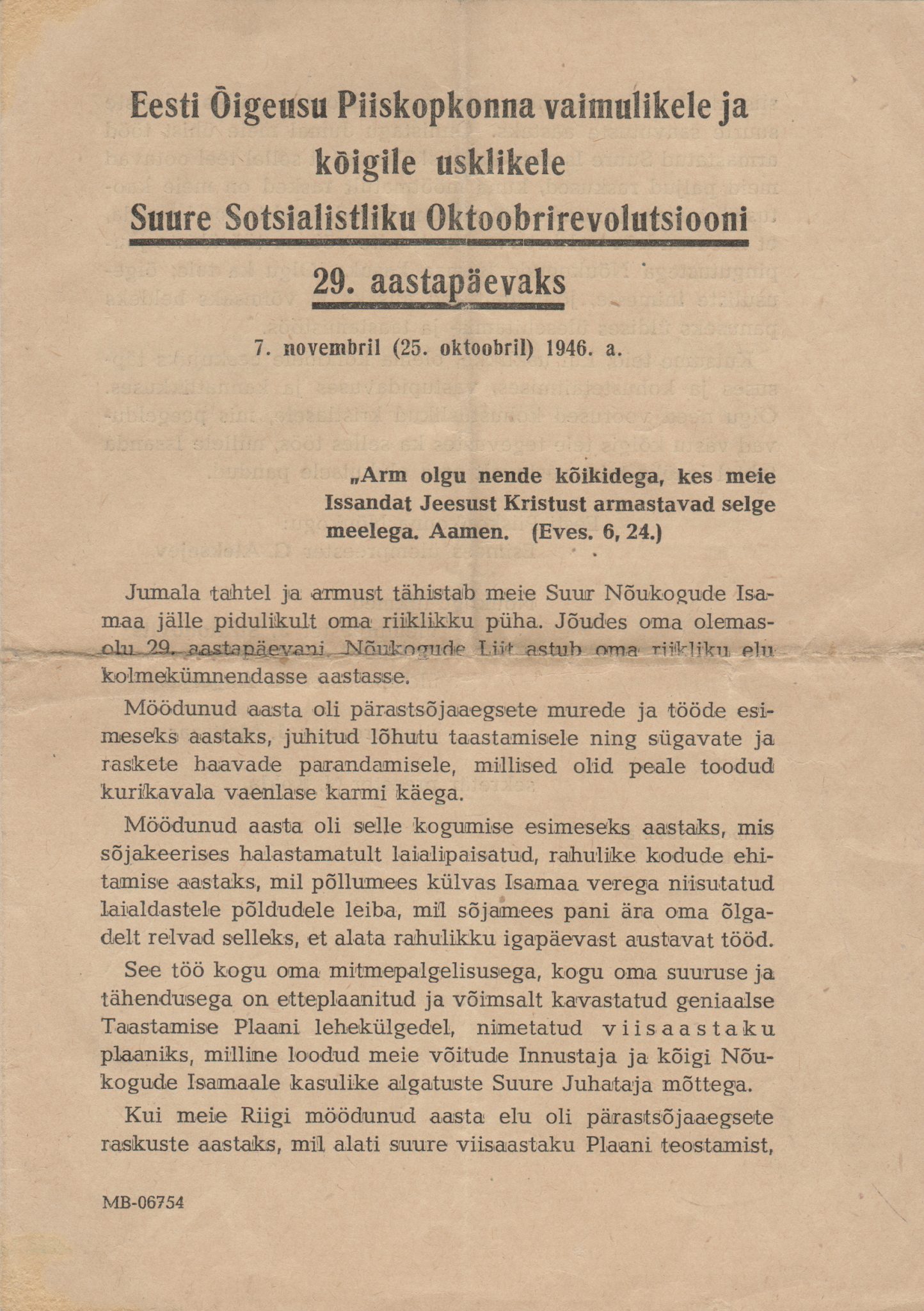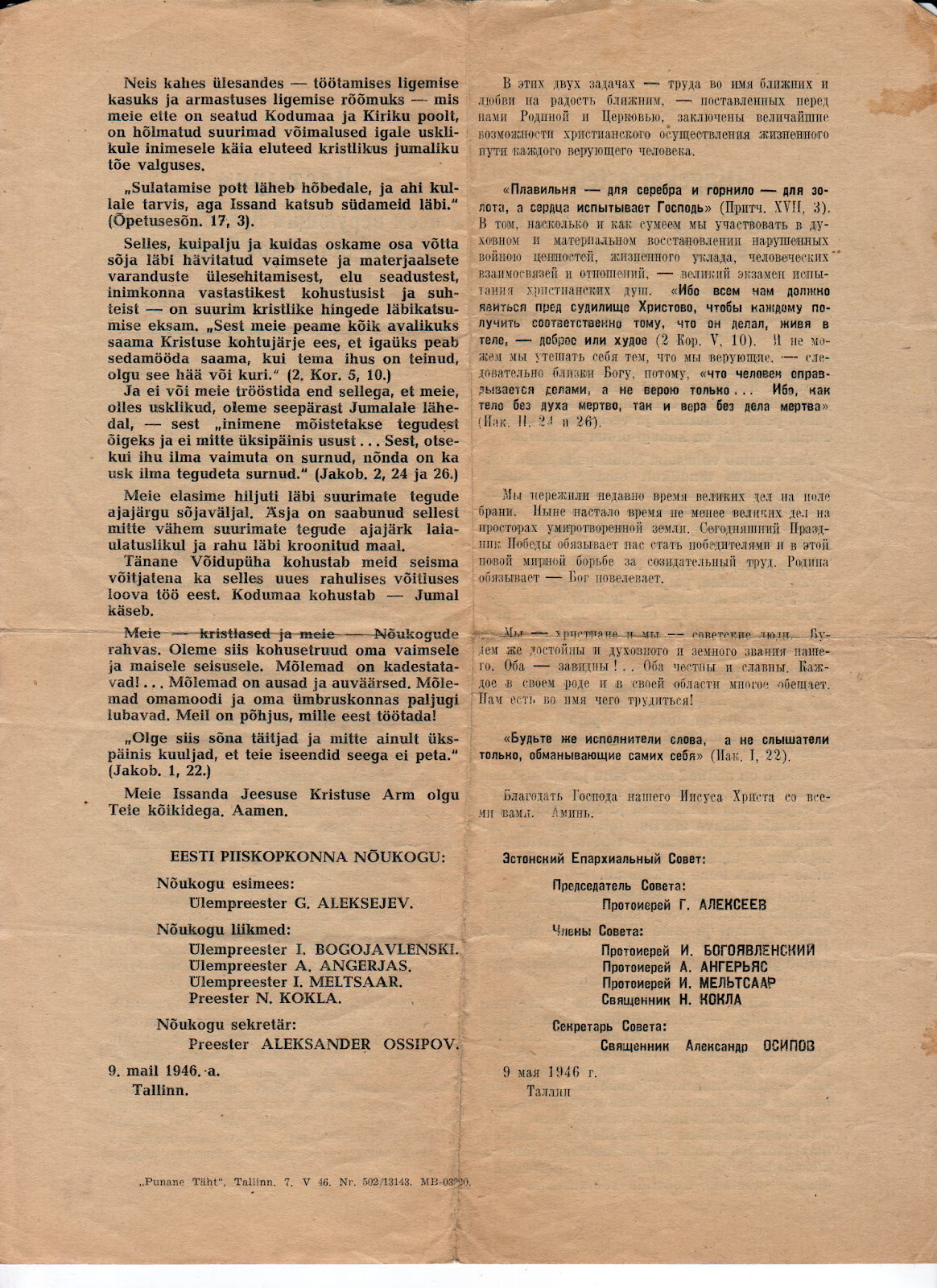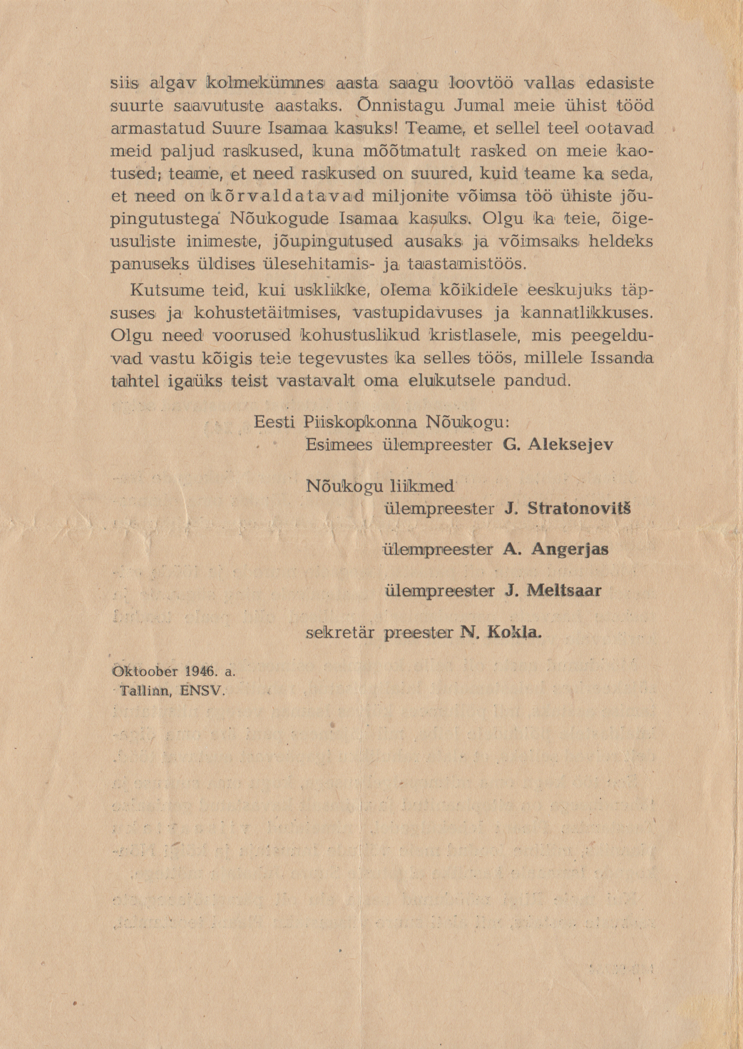 — kristlased ja meie — Nõukogude rahvas. Oleme siis kohusetruud
