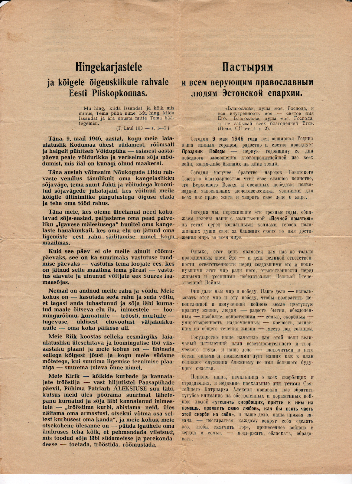 9. mail 1946. aastal, kogu meie laiaulatuslik Kodumaa ühest