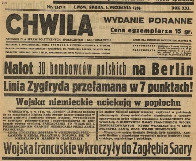 А вот, что в это время сообщает своим читателям львовская газета в номере от 6 сент 1939 года (Львов, бывш. Lemberg, теперь это украинский город):