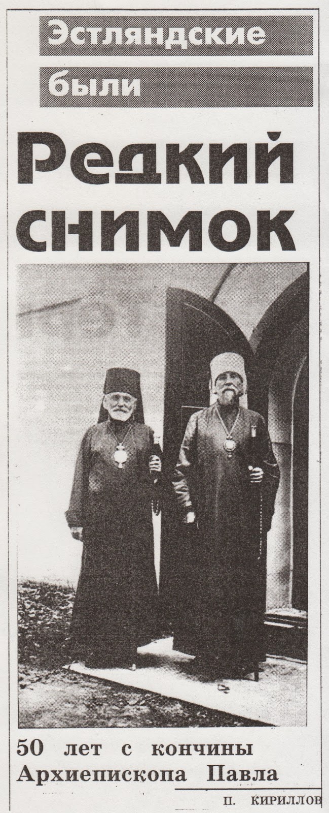 В феврале этого года (1996) исполнилось 50 лет со дня кончины Архиепископа Эстонского и Таллинского Павла (Павел Григорьевич Дмитровский). «...Светлая память об этом архипастыре и человеке живет в сердцах всех тех, кто встречался с этим замечательным человеком.